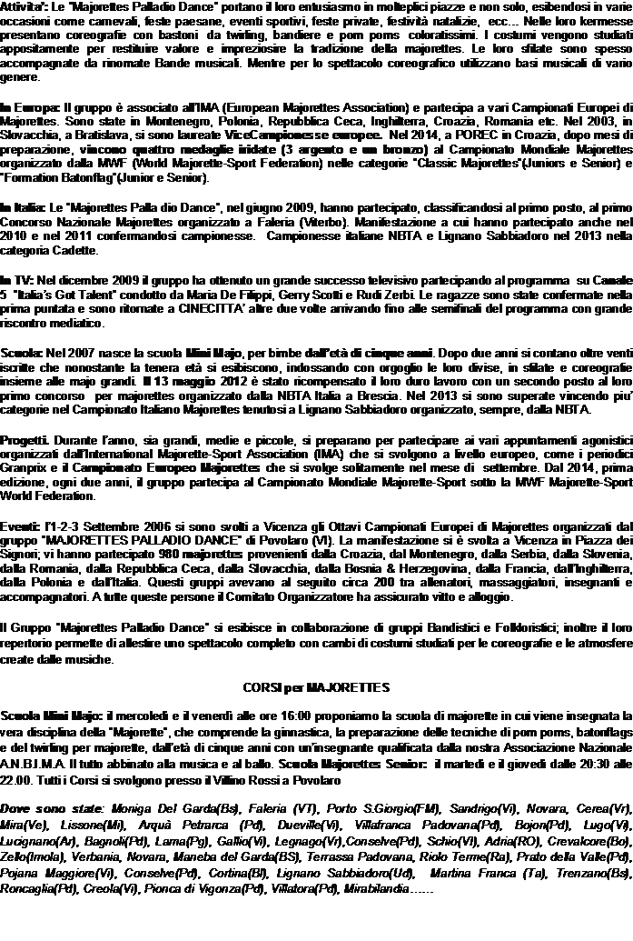 Majorettes Palladio Dance sede: via Marosticana, 256 36031 Dueville (VI) |